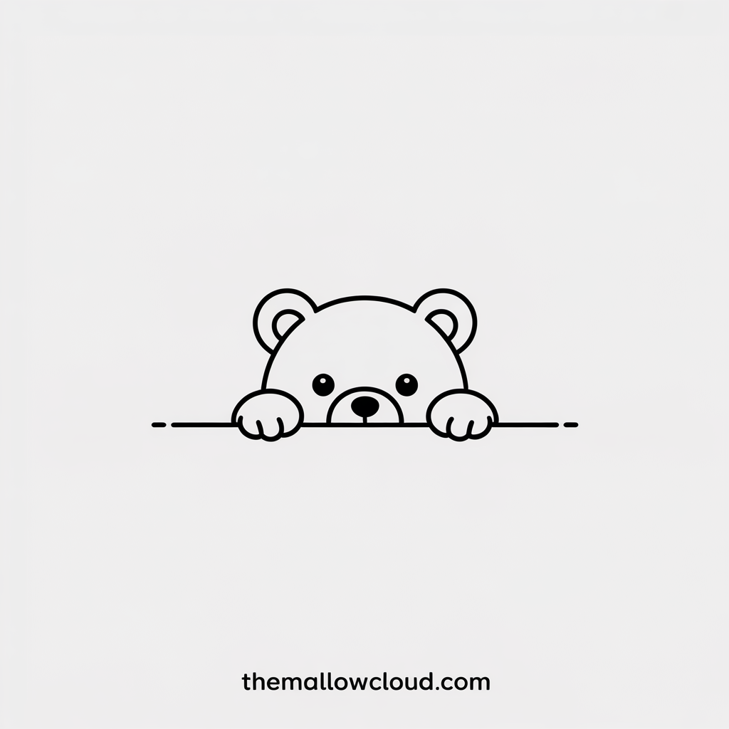 A peekaboo bear shows only its eyes and ears over a ledge or edge. This playful idea adds surprise to your doodles. It works well at the top of a page or behind a drawn object. The simplicity of just a few lines makes it quick and charming.