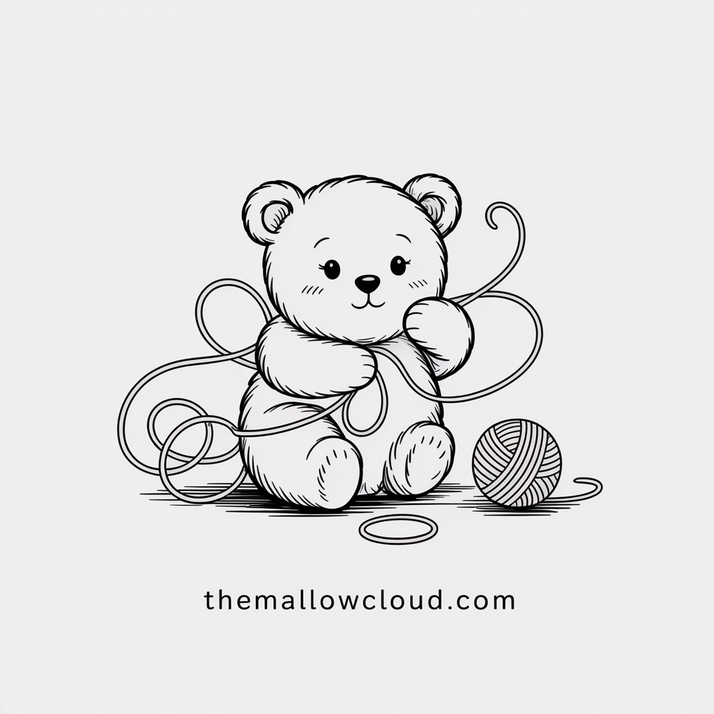 The idea works because it adds texture and visual interest with just a few lines. The loops of yarn contrast with the bear’s round shape. It evokes a sense of play and comfort, reminding you of quiet moments at home. The tangled lines feel lively and spontaneous.