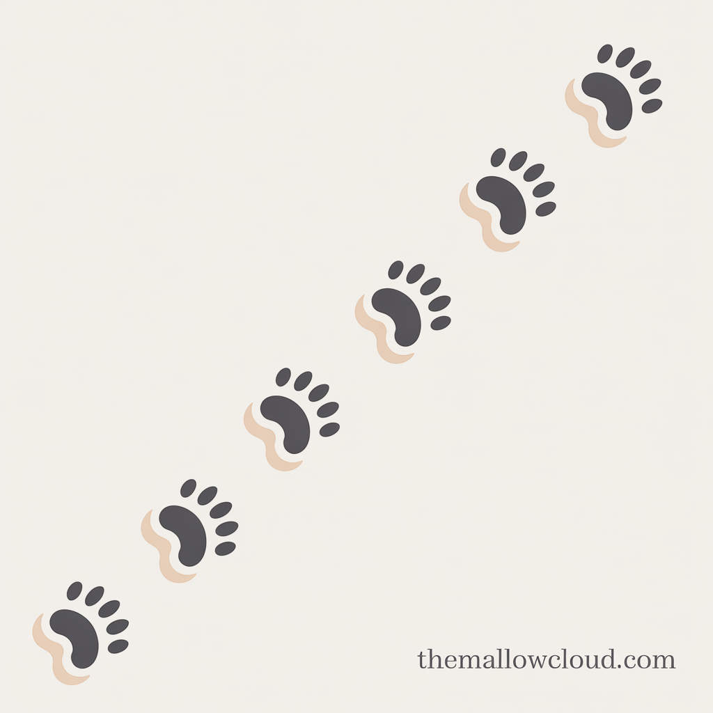 The idea works because it uses minimal detail and creates a visual path for the eye to follow. It suggests presence without showing the whole subject. The repetition of simple shapes sets a calm rhythm on the page. Footprints leave room for interpretation and daydreaming.