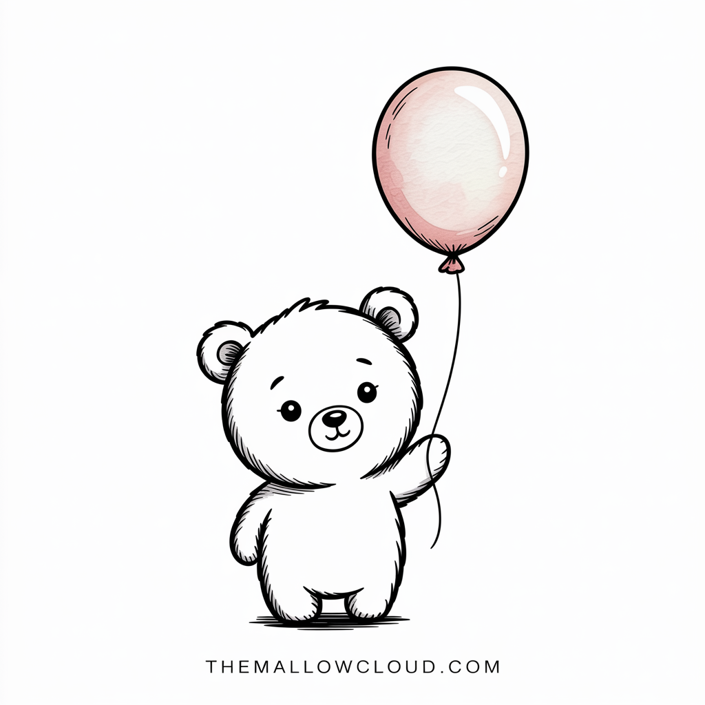 Combine a cheerful bear with a floating balloon to add a sense of whimsy. The bear can hold the string between its paws, looking up at the colorful sphere. This design adds height and movement to your page. It fits well alongside notes or as part of a decorative border.
