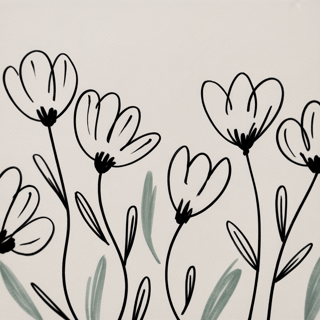 Minimal flowers strip everything down to the essentials. No extra lines, no heavy details, just a few soft strokes that suggest the shape of a flower.