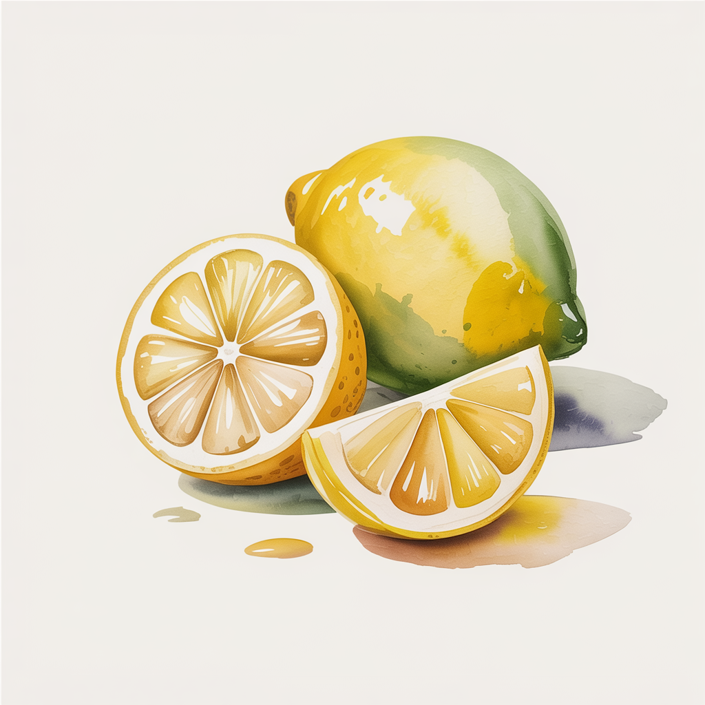 With the lemon, you practice combining soft transitions with slightly sharper edges. The stronger pigment requires less water, making it easier to control. At the same time, you learn how light reflects on smooth surfaces. The result looks fresh and clear.