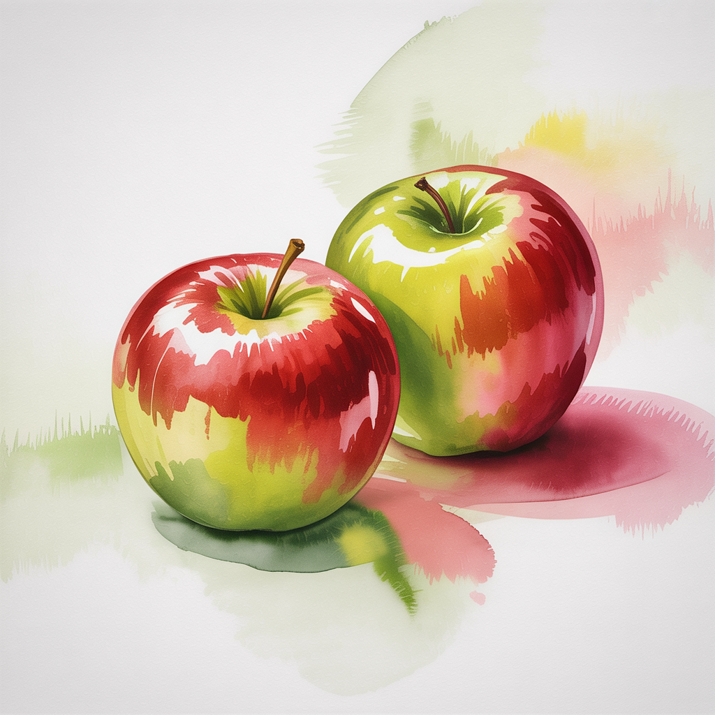 The apple combines a simple shape with subtle color transitions and offers plenty of room to experiment. Depending on the variety, you can use warm red, cool green, or soft yellow tones. Even a few layers of watercolor create volume. The round form is easy to sketch and quick to paint.