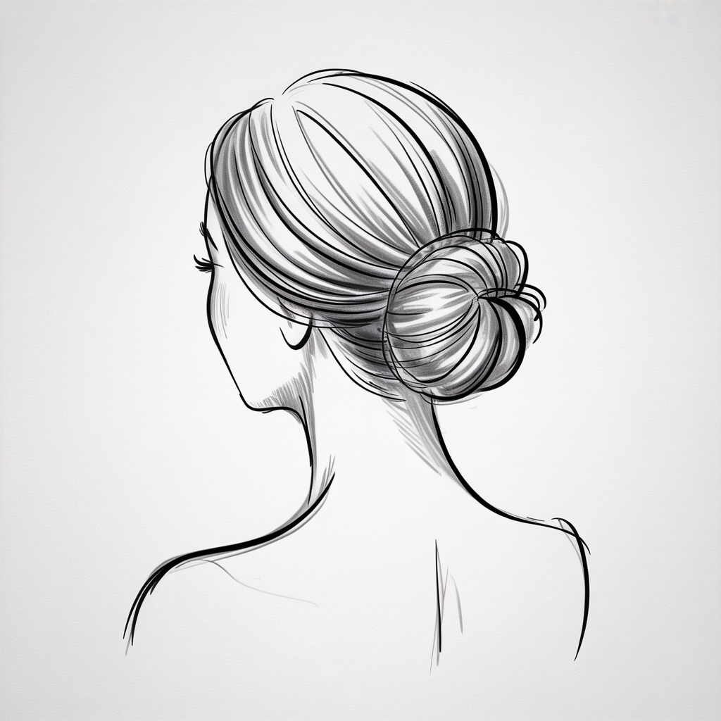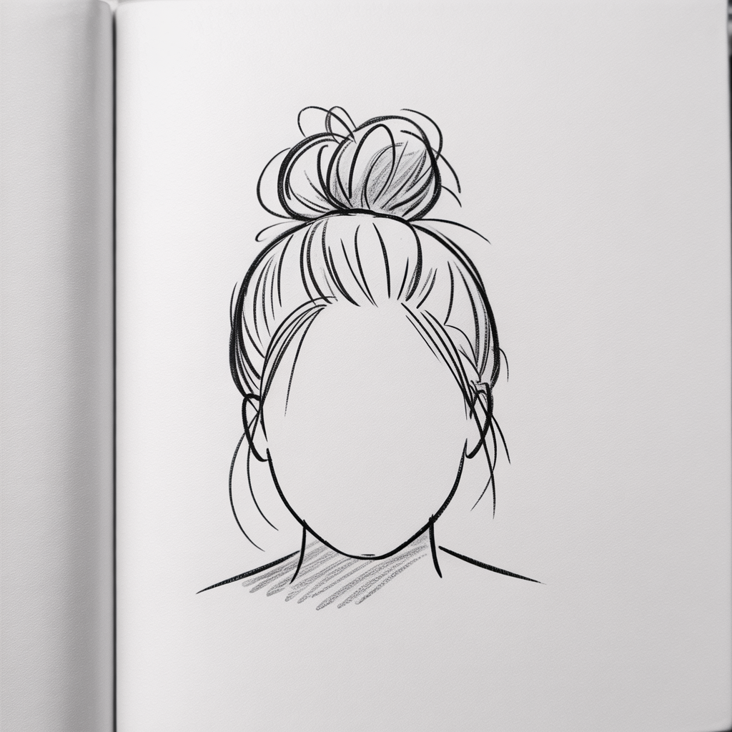 A loose bun sketch feels informal and inviting. It’s perfect for capturing a casual moment or a relaxed morning routine. The soft loops and stray strands add a sense of lived-in warmth. You can place it low or high, depending on the mood you want.
