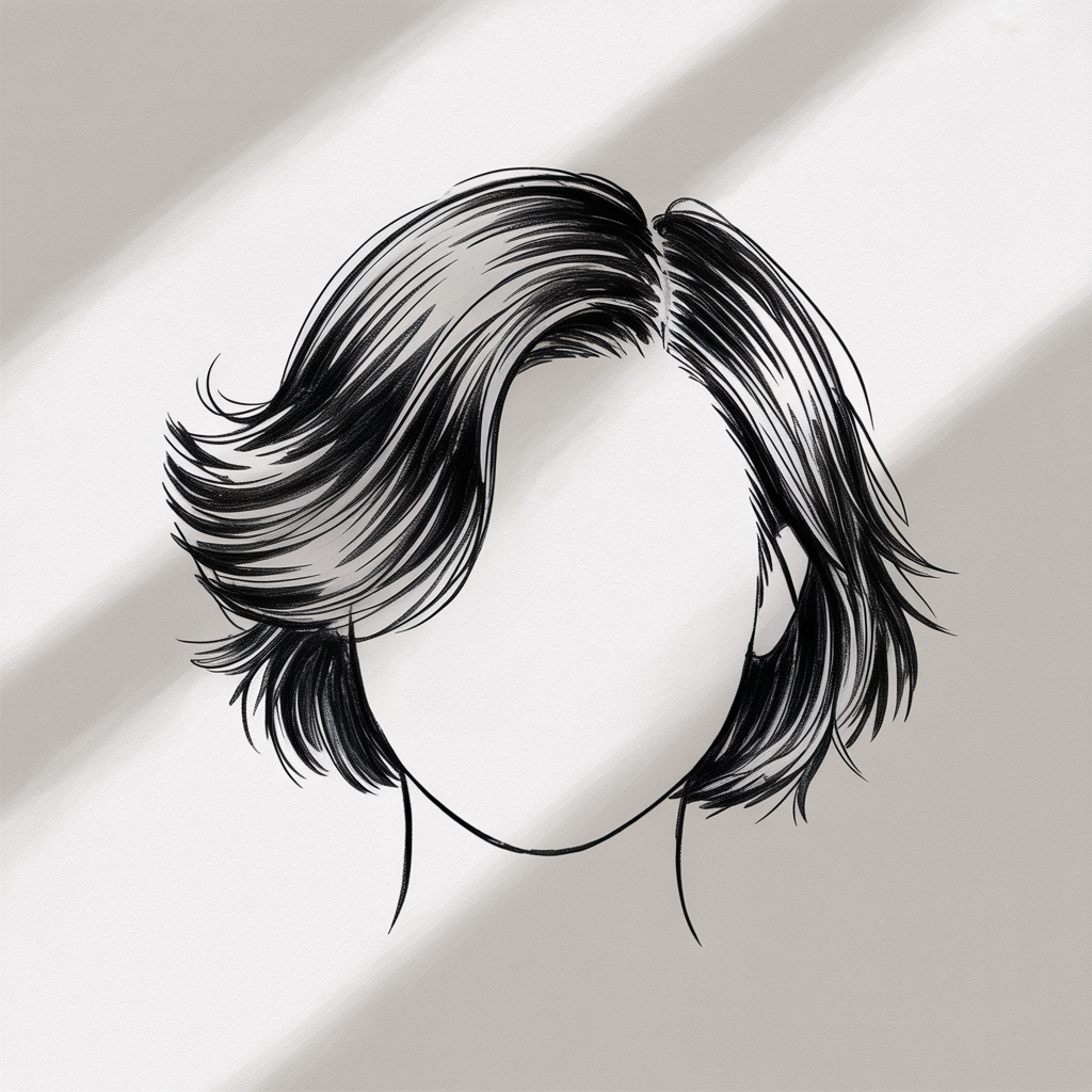A messy bob captures casual charm in a few quick strokes. The short length and uneven ends give it personality. It’s ideal for practicing varied line lengths and angles. You can play with texture by adding small, scattered marks.