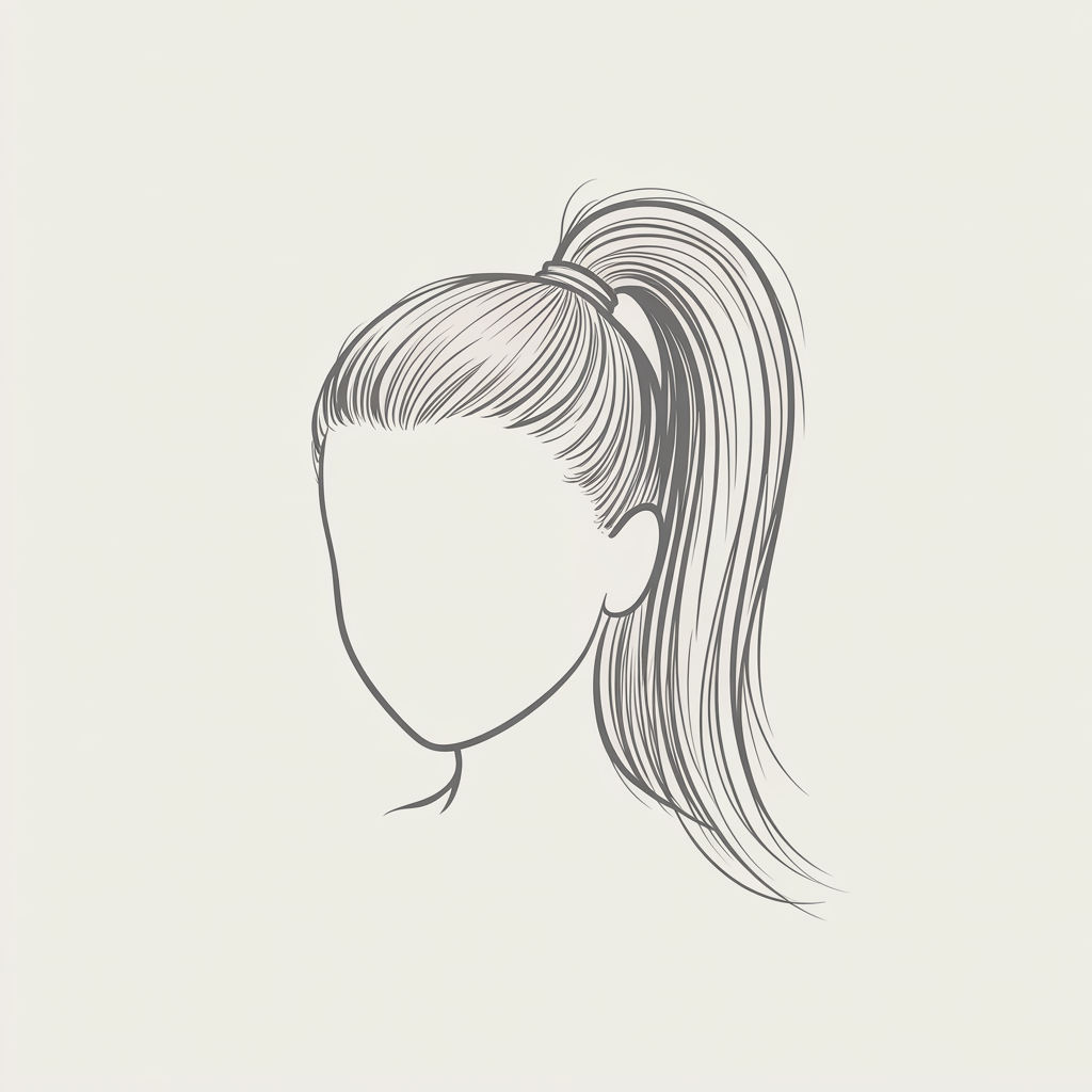 The straight ponytail offers clean lines and strong direction. It’s a good exercise in controlling line weight and consistency. You can angle it up high for a sporty feel or let it fall low at the nape. This idea brings clarity and elegance to your sketch practice.