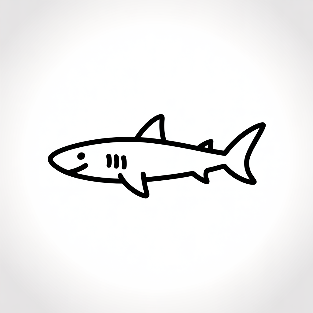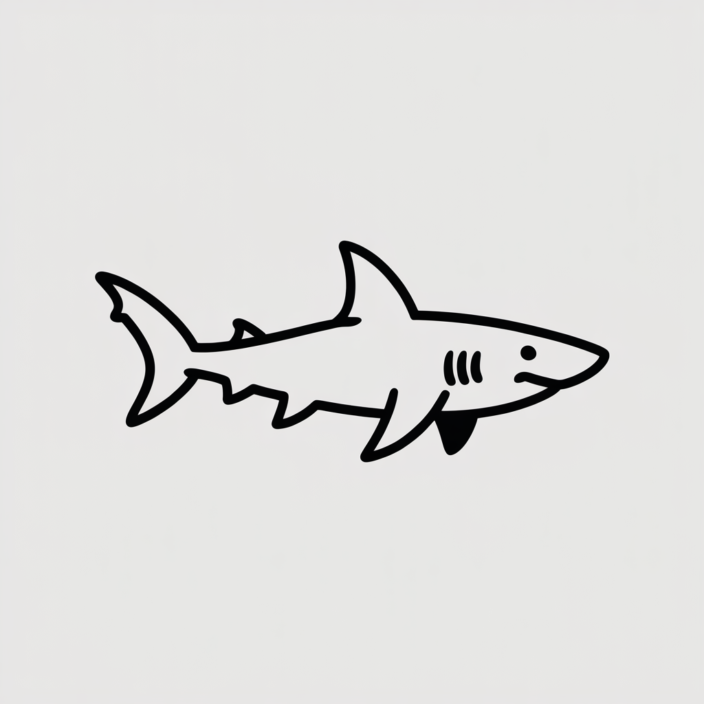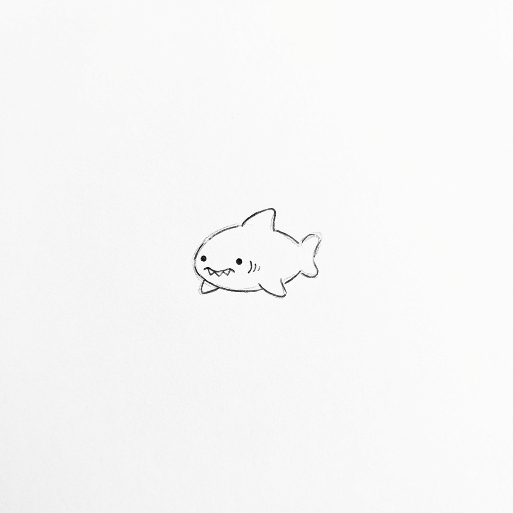 A tiny shark in the corner. A simple fin. A quick line.