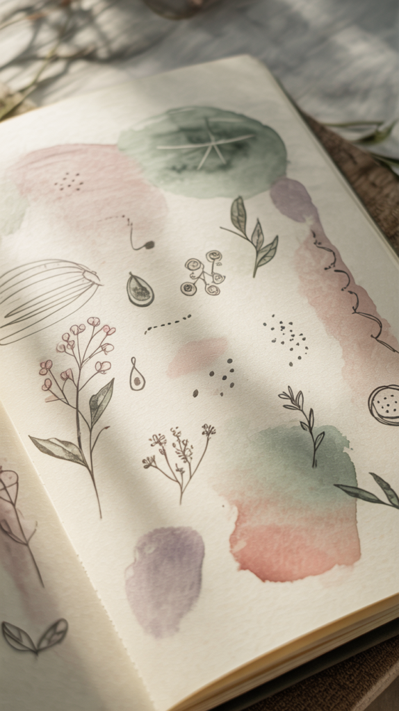 Focus on light layers, soft colors, and leaving some white space. Avoid overworking your painting. Stick to a simple color palette and let the edges stay slightly soft instead of trying to define everything.
